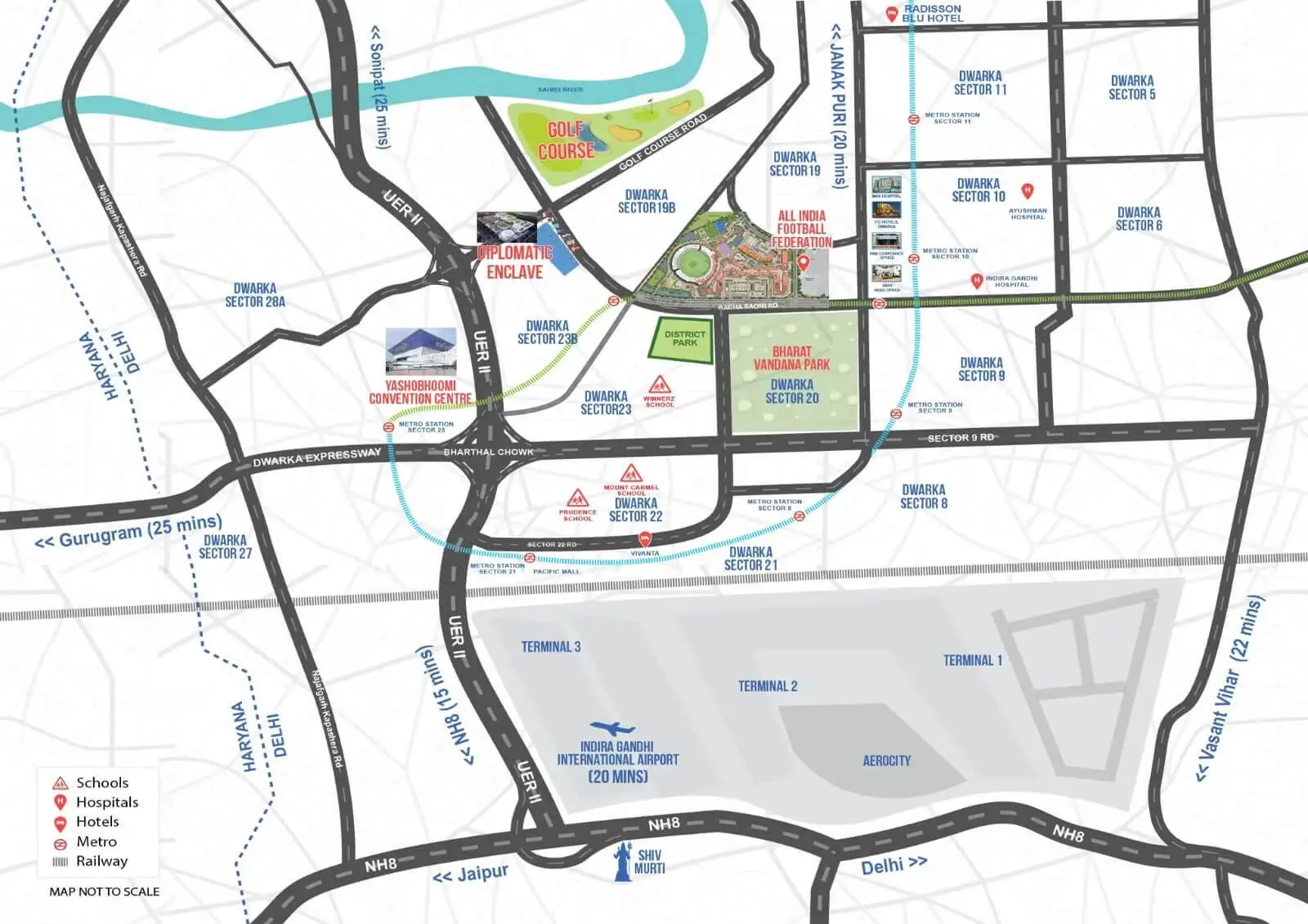 Only 700 meters away from Dwarka Expressway and UER II for easy commuting.